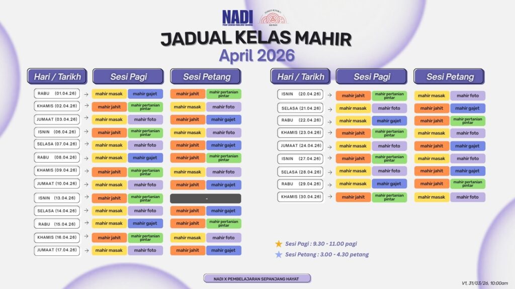 JADUAL KELAS MAHIR APRIL 2026